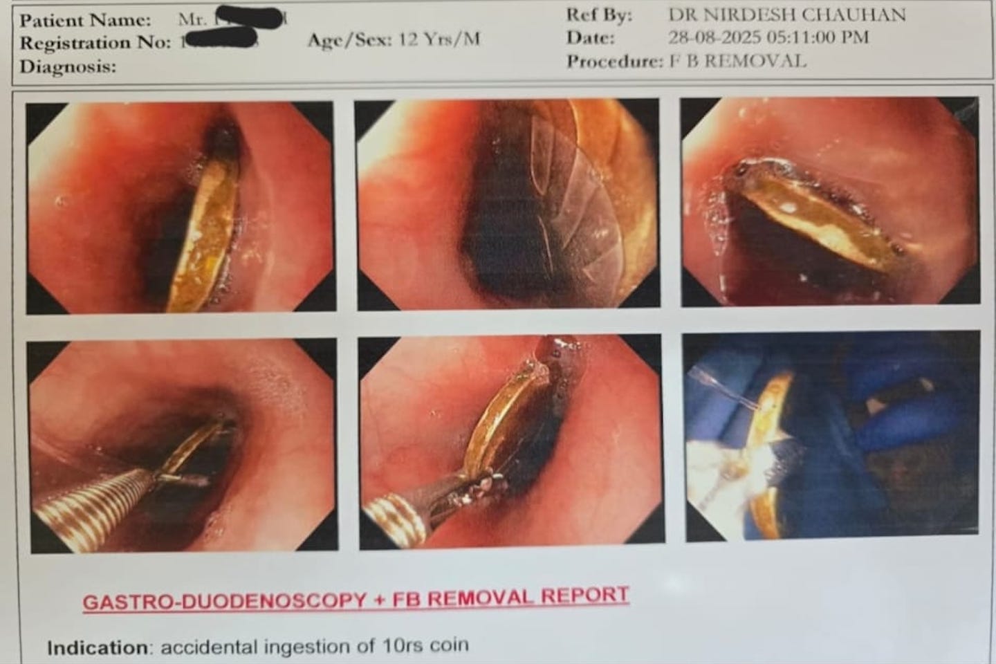 Doctors successfully Removed ₹10 Coin Lodged in 12‑Year‑Old’s Food Pipe